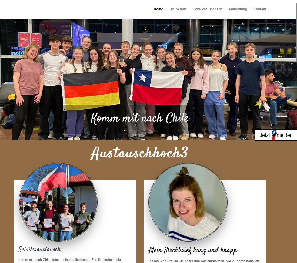 Frau Freund organisiert und begleitet den Schüleraustausch junger Menschen in Kooperation mit der Deutschen Schule in Puerto Montt. Die Schüler leben in Familien und lernen die Kultur des Gastgeberlandes kennen. Emotionale Bilder und Videos von Schülern, die Sie begleitet hat, geben der Homepage eine besondere Stimmung.